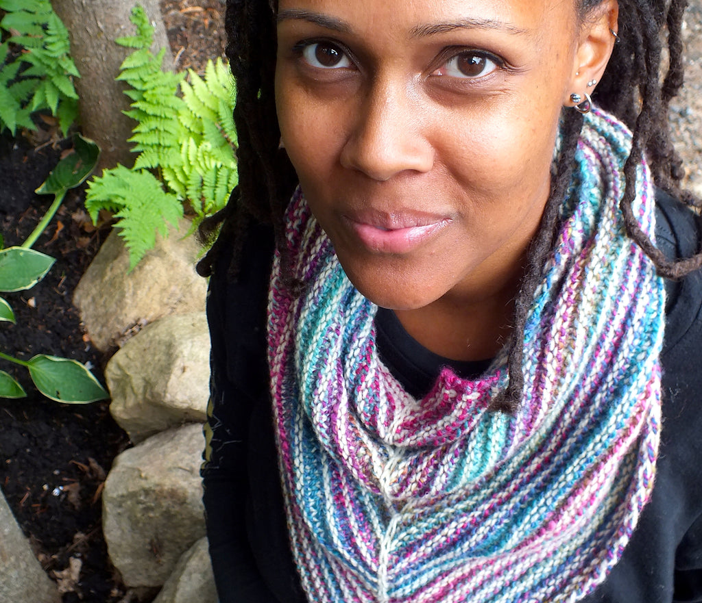 Sometimes you’ve got to be scrappy! You’ve got to jump in quick and tell’em how itis. You’ve got to make a statement right off the hop so they know who you are and what you’re about. This pattern is exactly that. A simple and to the point way for me to show you what I’m about: Patterns that are fun and addictive, graphic and effective. Patterns that show off your favourite yarns, whether they’re scraps, handspun, a special yarn baby from your stash, something you dyed yourself or a combination of those!